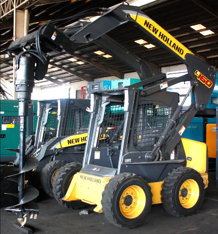 Auger can be attached to a Skid Steer Loader or to a Backhoe